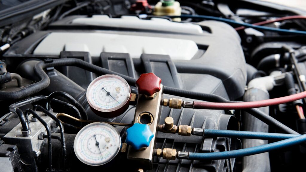 Pemeriksaan dan perbaikan sistem kelistrikan AC mobil.